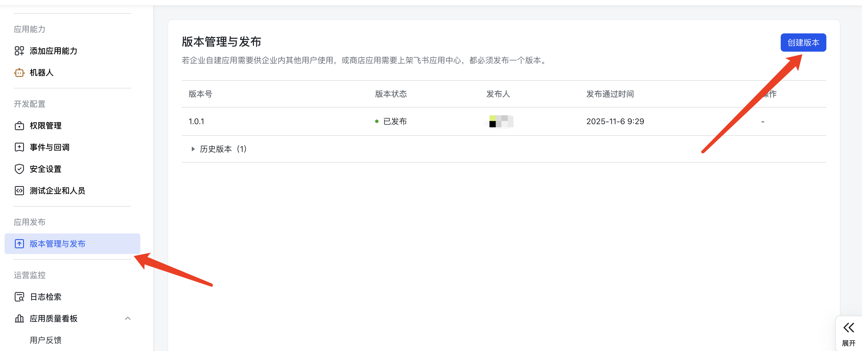 - 【版本管理与发布】-【创建版本】,并申请发布上线。