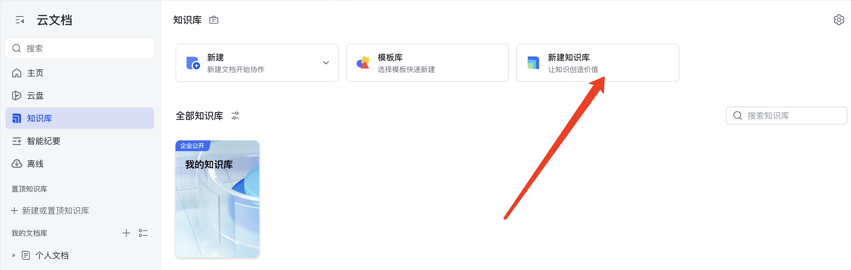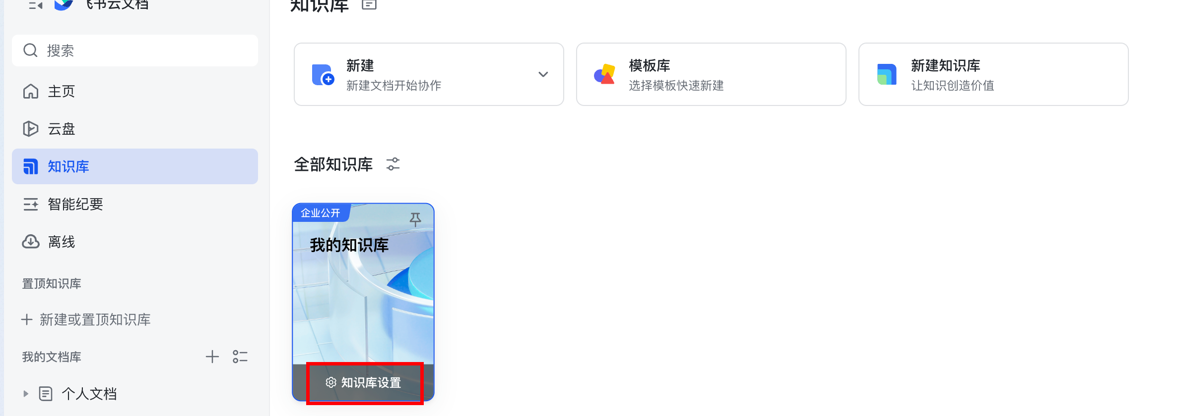 - 进入【飞书云文档】-【知识库】-【新建知识库】