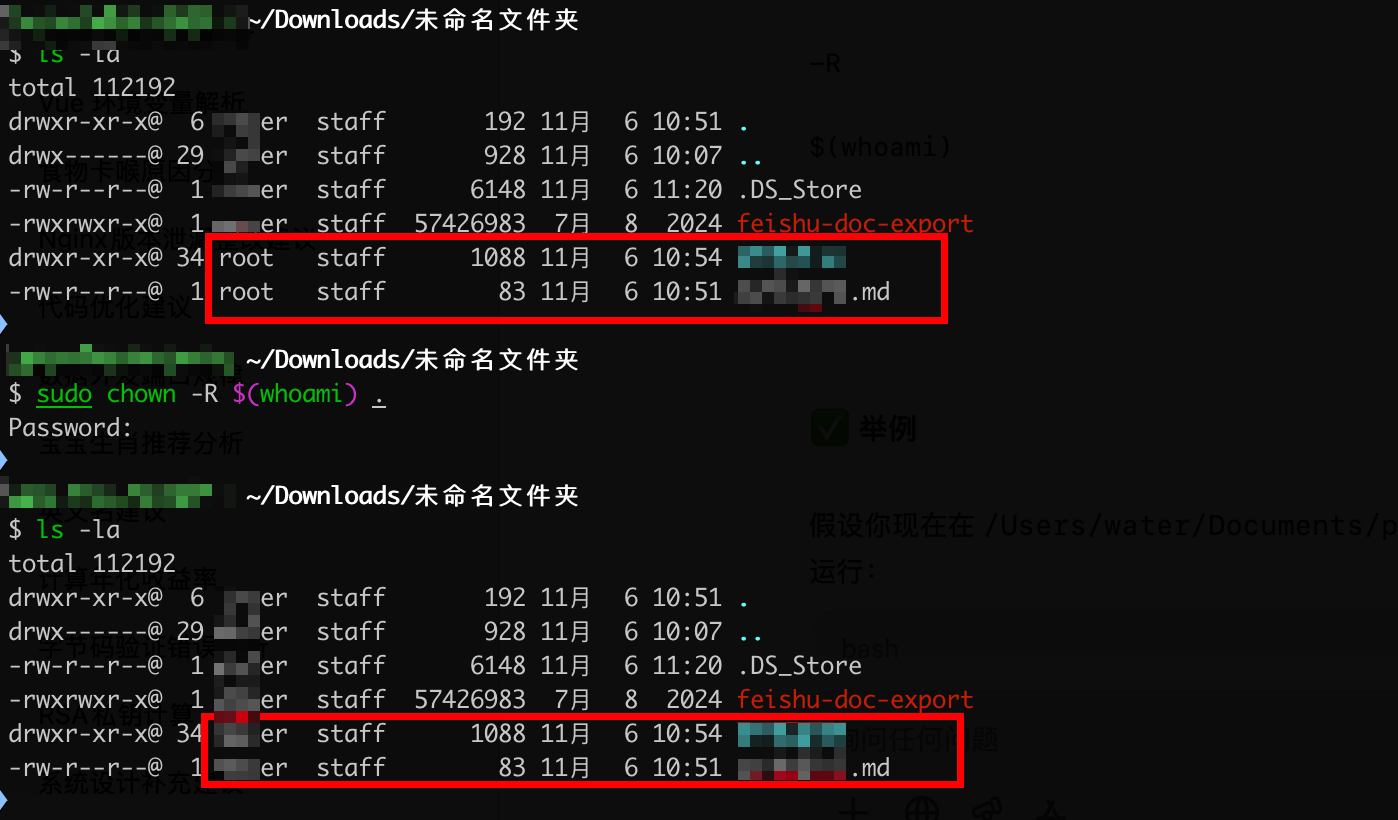 # 使用sudo命令获得知识库文件的属主会变成root,某些情况下可能无法编辑文件,将文件的属主改为当前用户。