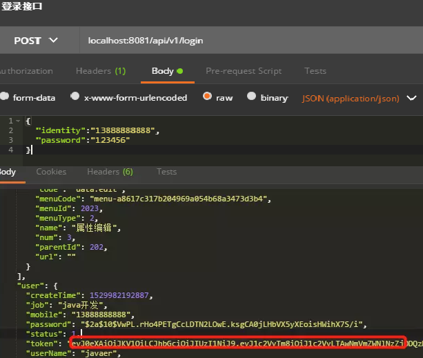 访问登录接口:localhost:8081/api/login