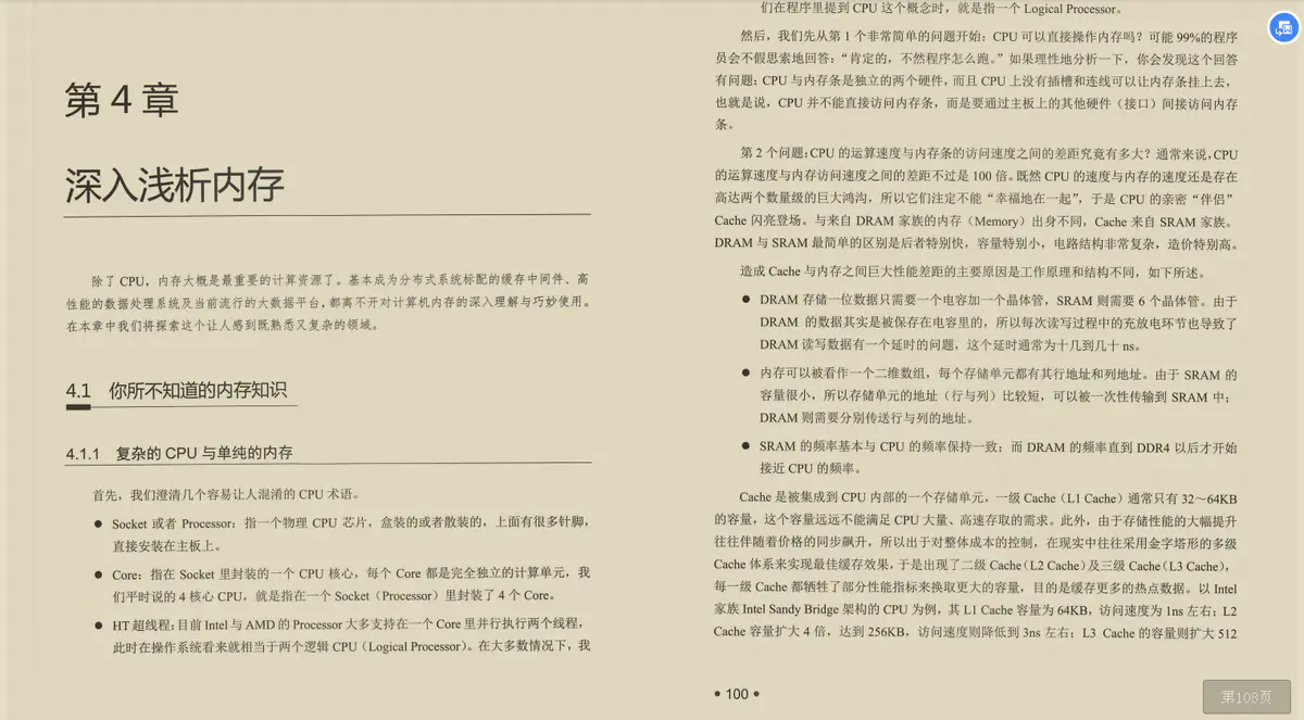 除了CPU,内存大概是最重要的计算资源了。基本成为分布式系统标配的缓存中间件、高性能的数据处理系统及当前流行的大数据平台,都离不开对计算机内存的深入理解与巧妙使用。在本章中我们将探索这个让人感到既熟悉又复杂的领域。