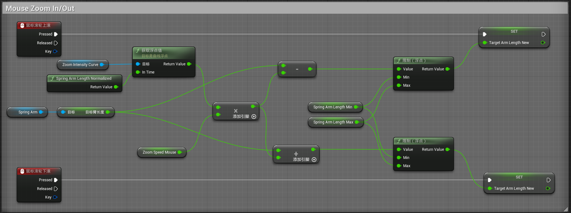③复制蓝图(只要有两部分:tick事件、鼠标滚轮事件)
