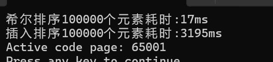 cout << "希尔排序" << MAX << "个元素耗时:" << t2-t1 << "ms" << endl;