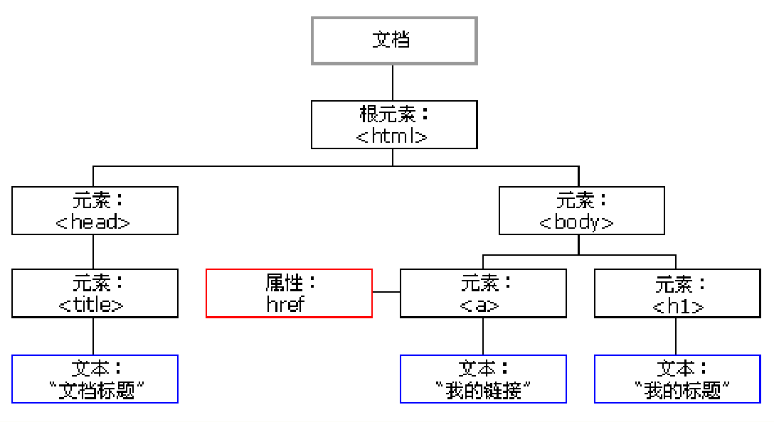 简单理解,就是将标签(下图中的元素)进行树形的结构化。这样,JavaScript 就获得了足够的能力来创建动态的 HTML。