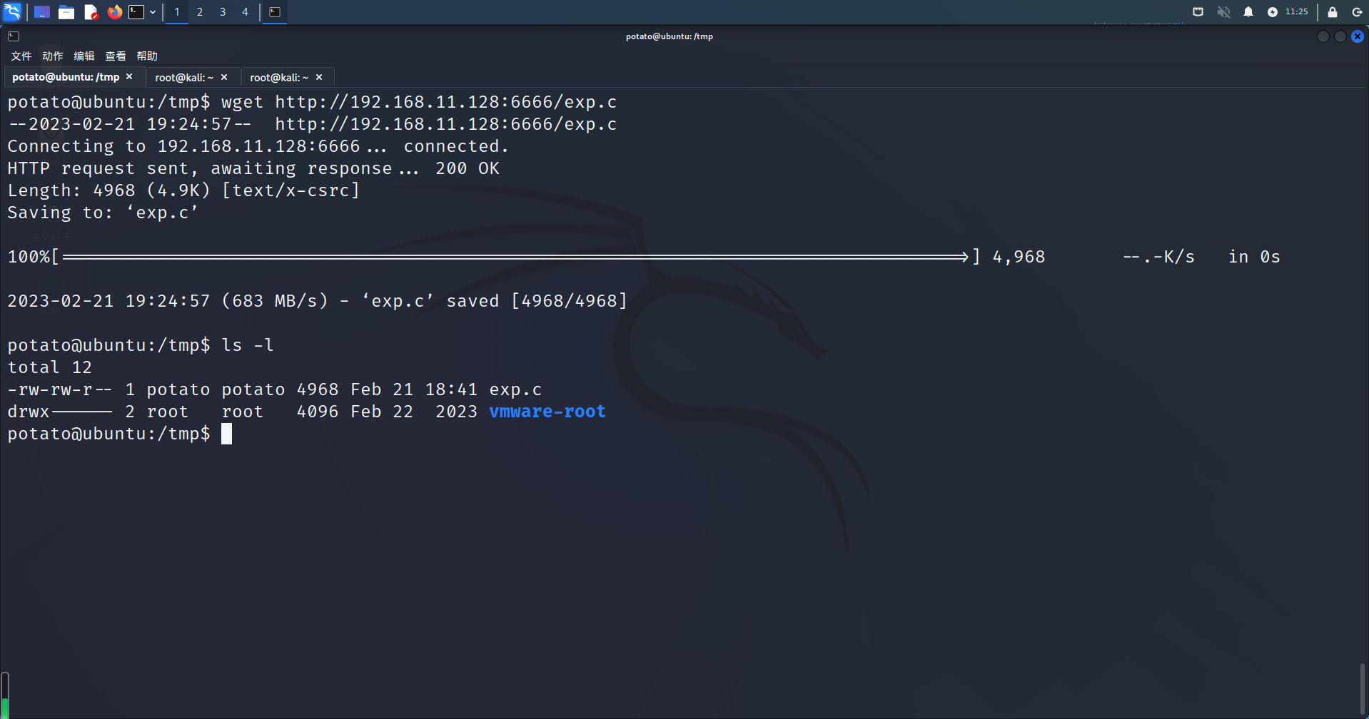 potato@ubuntu:/tmp$ gcc exp.c -o exp