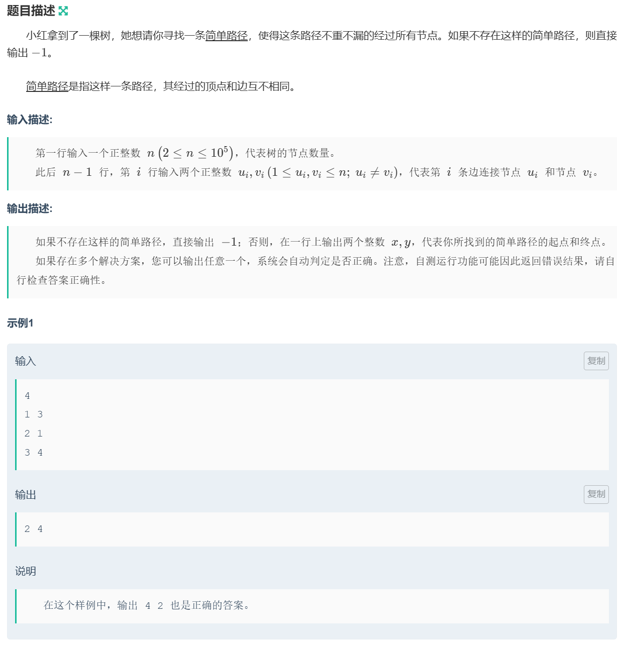 有2个度数为1的点就满足单条路径,其他情况都不满足。因此记录每个顶点出现的次数,然后逐一判断即可