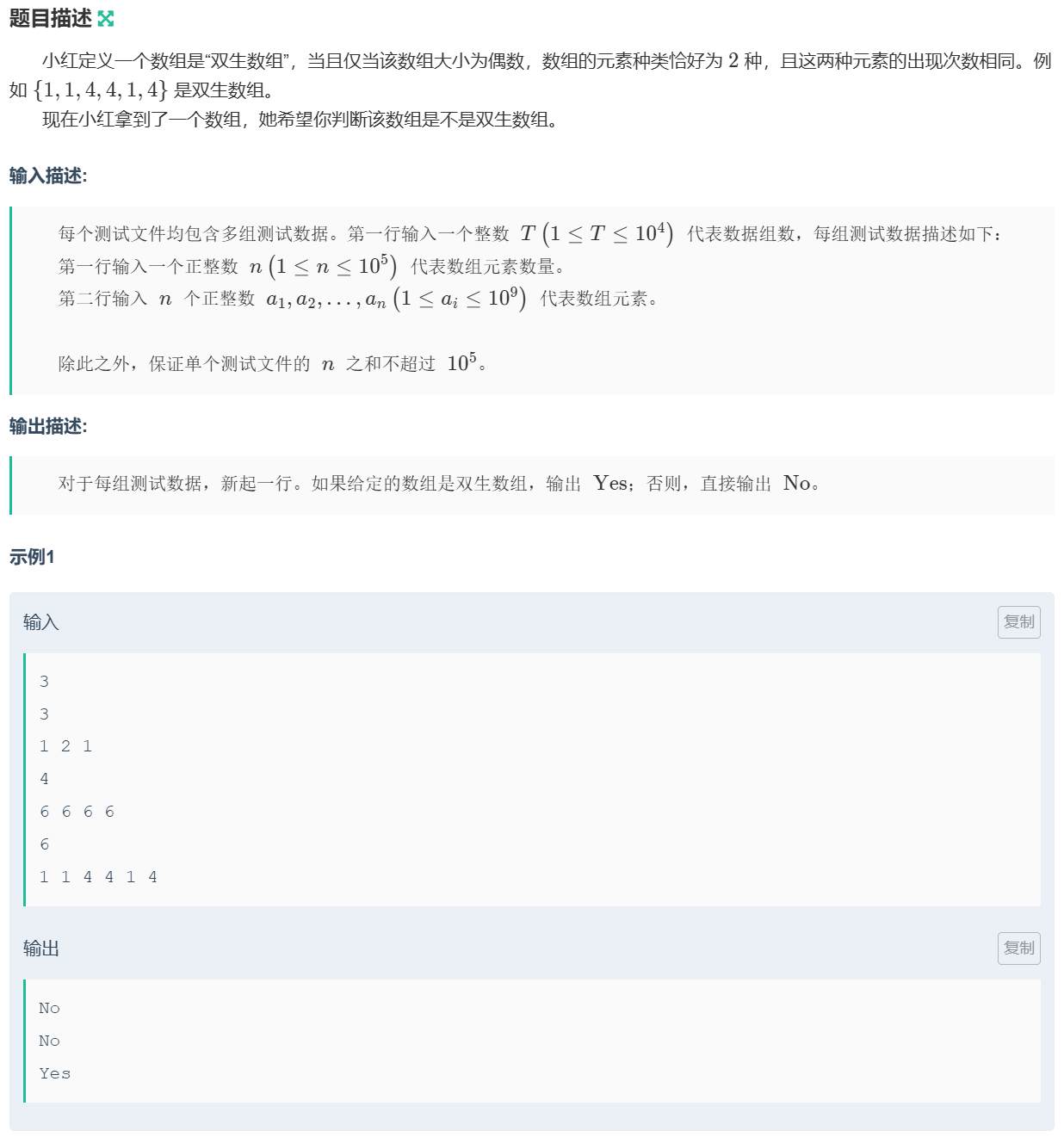 这道题利用map的特性就行,size不是二或者可key1和key2对应的value不一样就是No,否则Yes
