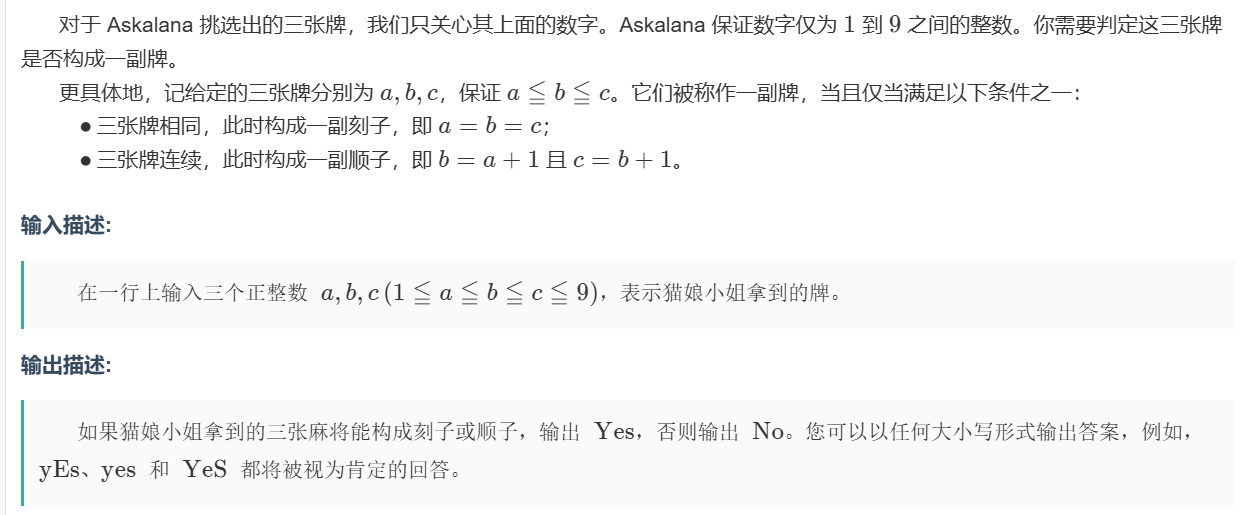 else if(a+1==b && b+1==c) cout << "Yes\n";