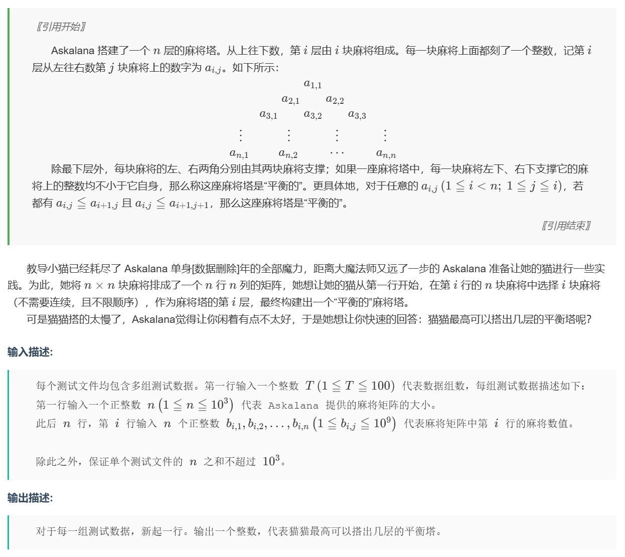 本体也贪,要使得塔平衡,就要使得每一层数字在满足条件的情况下尽可能小