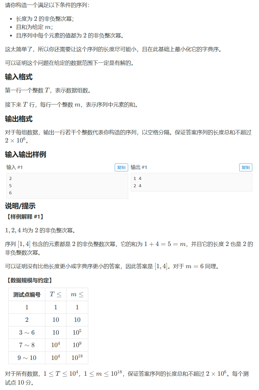 先把m拆为二进制数的形式,再判断m的长度是否为二次幂,对于这个判断,我先做个预处理打表,判断时查表。如果m长度不是二次幂,那么从最小位开始,把m拆开,遇到1就跳过,直到长度为二次幂为止,这个过程用deque实现