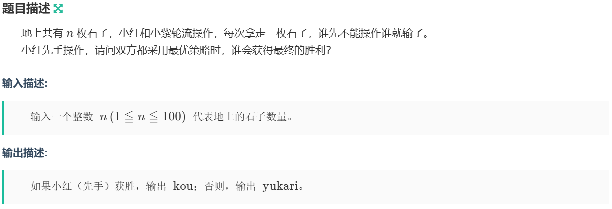 cout << (n%2 ? "kou\n" : "yukari\n");