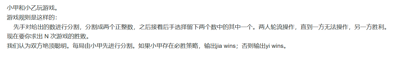 观察发现,a为偶数甲胜,a为奇数乙胜