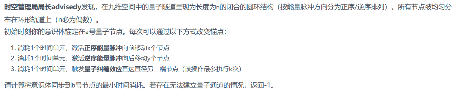 遇到k大于0的情况就判断从结束点对面直接到结束点和正常走哪个小
