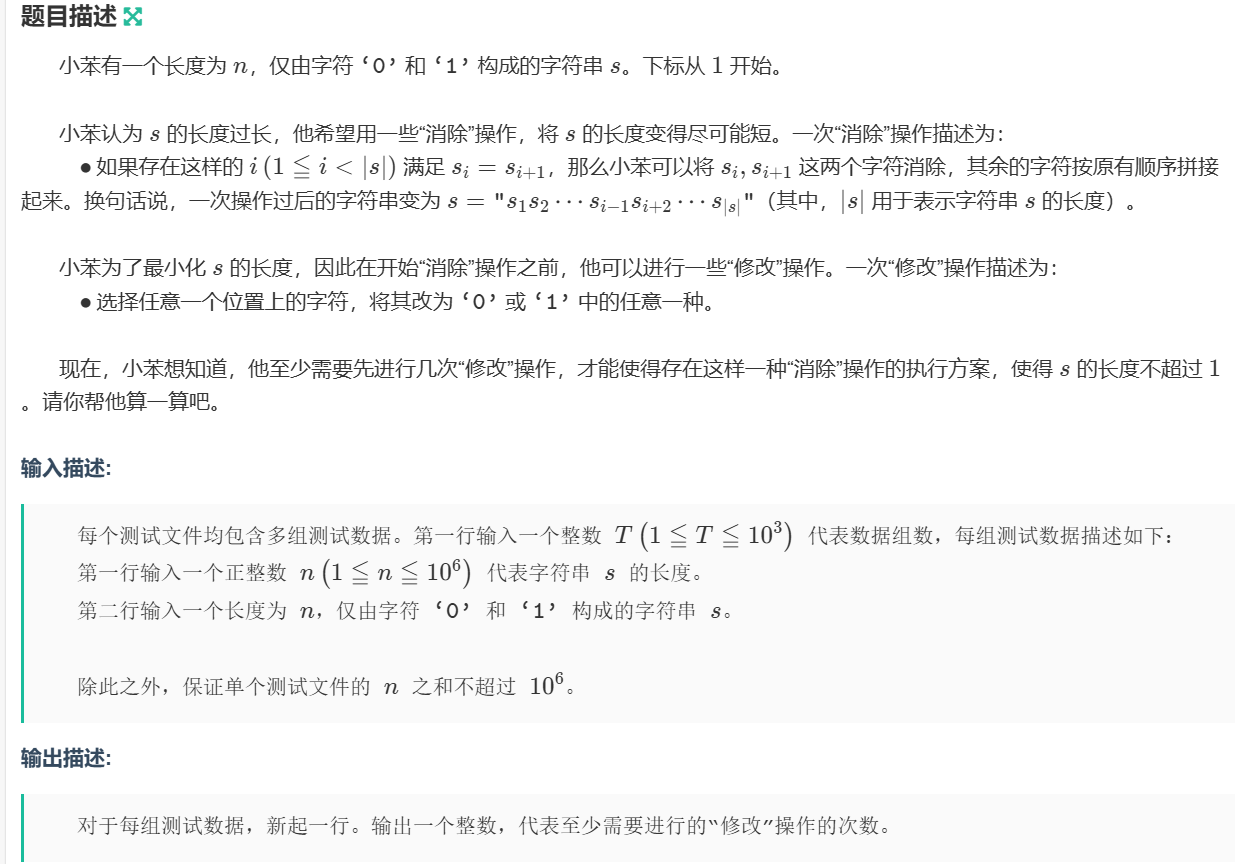 删到最后一定是0101或1010这种相邻不相同的,那么操作次数就是这种串的长度整除2