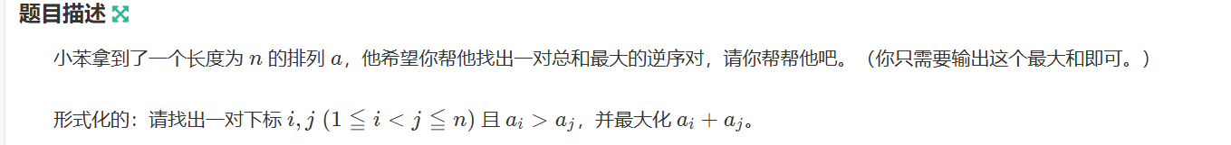 从最后一个数开始倒序处理,当前数(现在是最后一个数)作为逆序对(x,y)的右数y,要使得逆序对之和最大,那么左数x就要尽可能大