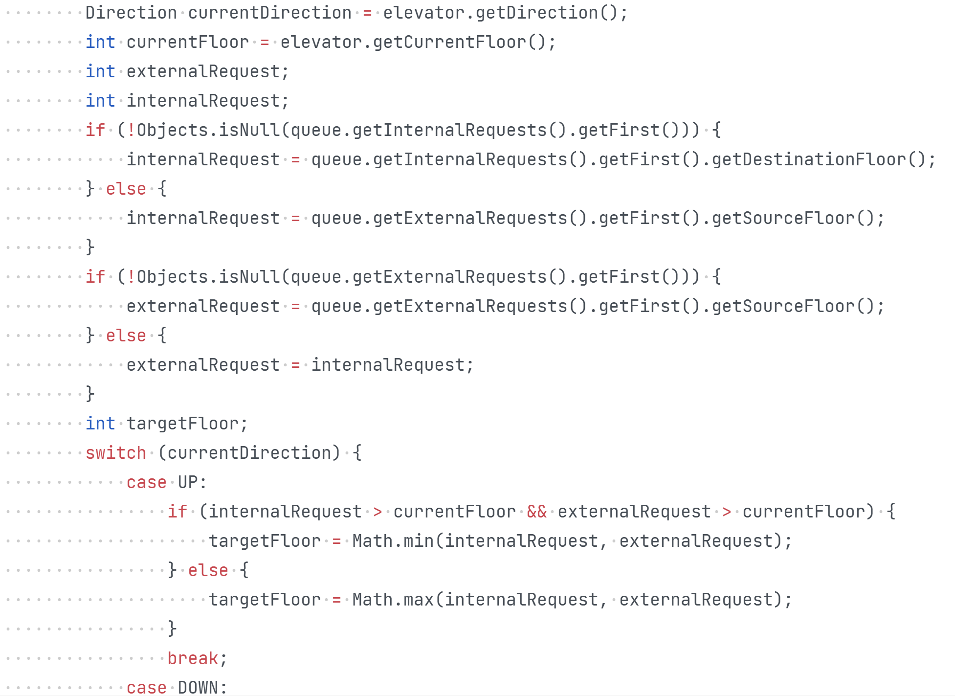 这部分代码是获得用于获得下一个要执行的楼层。对于第三次题目,给了要求,在执行外部楼层后,要将目标楼层给内部请求的队尾,但是由于没有理解到,就只是单方向地进行执行,也没有处理相对应的目标楼层,为此也浪费了不少时间