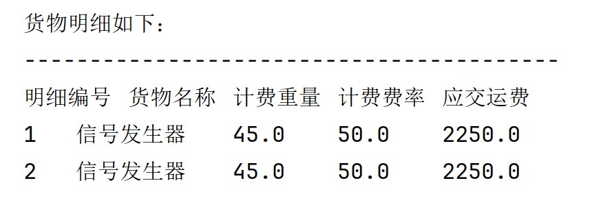 对于的其他的类都是大差不差的,还需要注意的就是对于中间类在计算重量,运费等的时候要面向接口,而不是单一地进行计算。最后再进行相应的输入和输出报表即可。