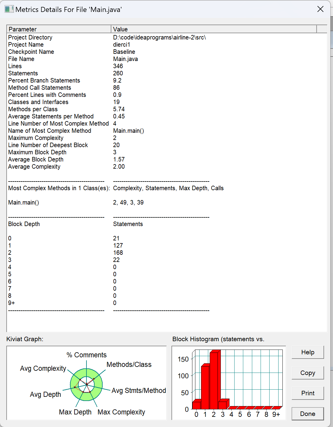 可以看到,第一次的代码几乎没有注释,所以在以后的编写代码过程中,需要适当地添加注释,这样也方便自己在日后的理解。其次,类平均方法数较高,说明可能存在类设计不恰当的地方,例如,没有完全地遵循单一职责。可以改进的地方就是在编写代码的时候可以提取重复逻辑到公共方法,减少代码冗余,此外可以使用继承、接口或组合提高代码复用性。最大代码块深度为3,有些高,可能会影响可读性,可以减少多层嵌套。最后就是代码行数比较大,可能存在多余的代码,可以考虑简化代码。