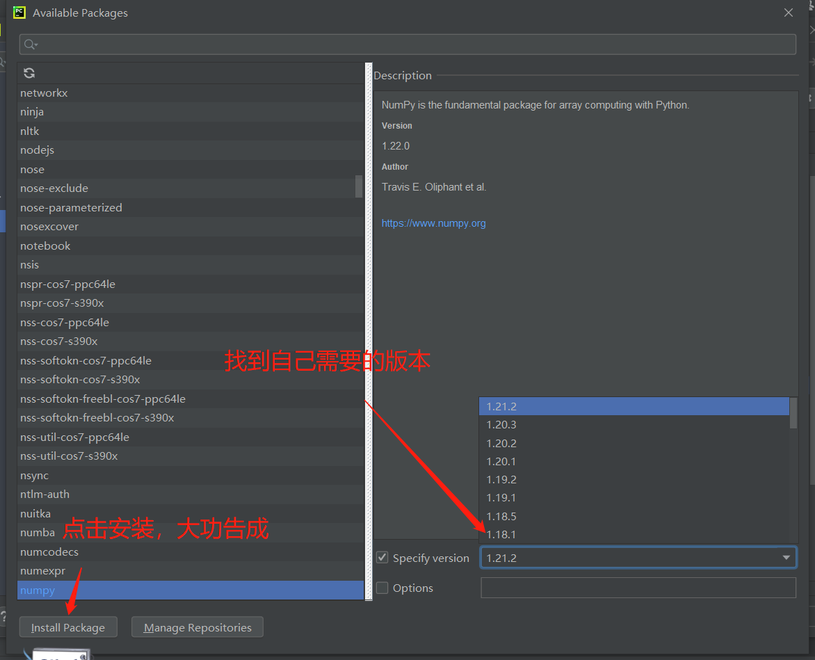 也可以直接在编辑器的解释器设置中搜索安装和修改版本