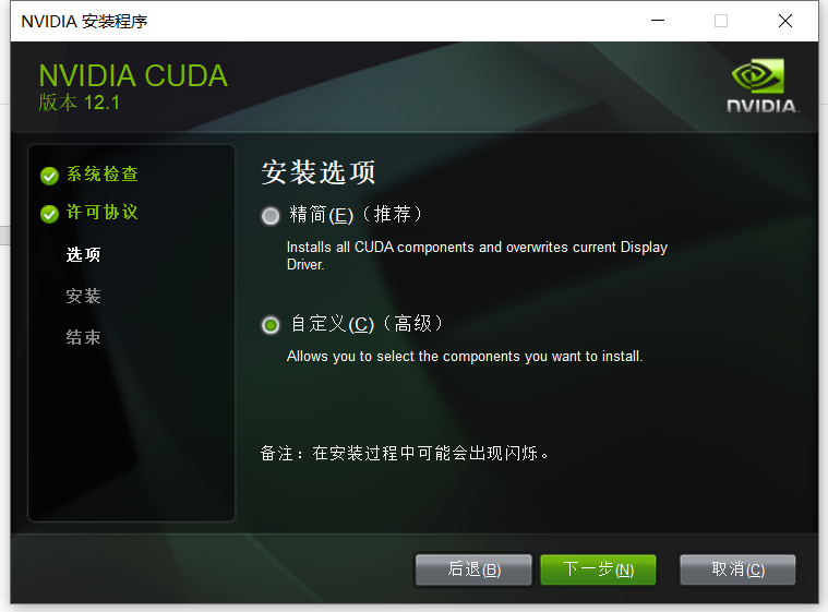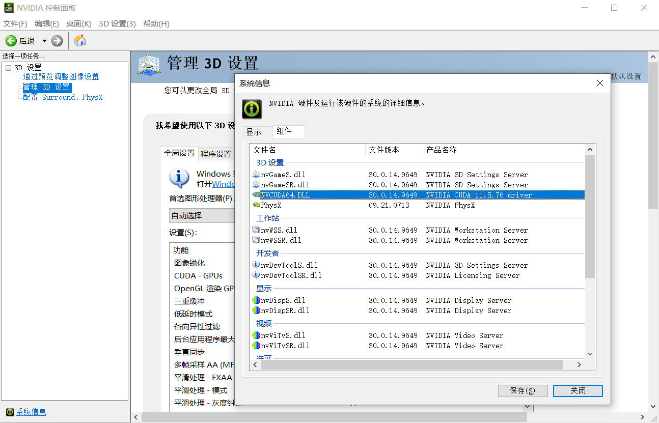 打开NVIDIA控制面板->帮助->查看系统设置->组件:显示可安装的CUDA版本及以下低版本
