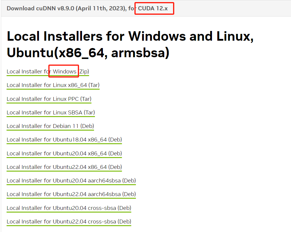 特别提醒,一定要选择与CUDA相对应的版本进行下载!!!