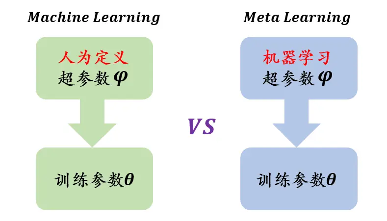 元学习希望使得模型获取一种学会学习调参的能力,使其可以在获取已有知识的基础上快速学习新的任务。机器学习是先人为调参,之后直接训练特定任务下深度模型。元学习则是先通过其它的任务训练出一个较好的超参数,然后再对特定任务进行训练。