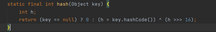 先忽略上面部分,我们关注的是函数putVal中的hash(key)。