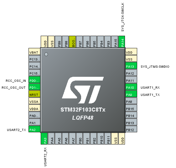 - 下位机端 STM32F103C8T6 通过 USART2 接收数据后: