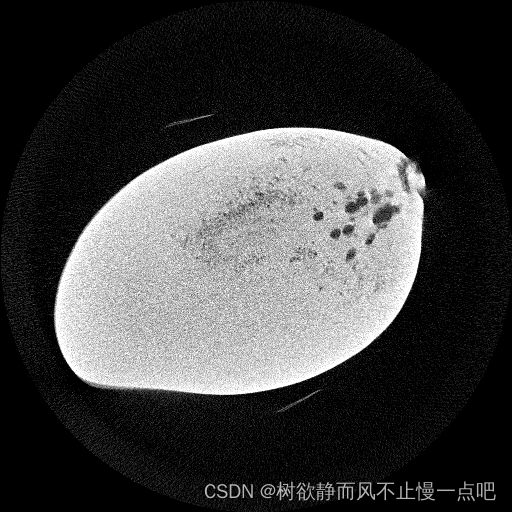 解题思路:二值化图像,使用一个背景值0、芒果区域值为1的图像A,与经过二值化及中值滤波的芒果CT图像C异或,得到与除了坏损区域值为1,其他区域皆为0的图像B。计算图像A和B值为1像素点个数分别为cnt1和cnt2,单层坏损率即为cnt2/cnt1。