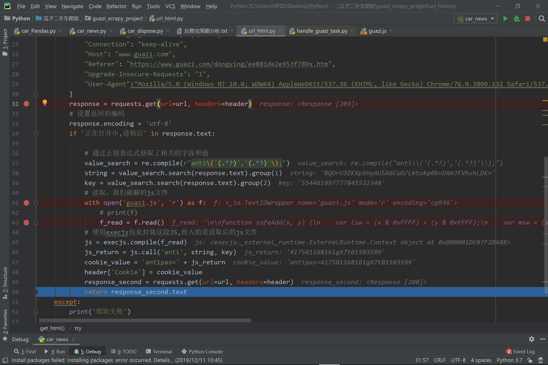 瓜子二手车有反爬虫,我们需要破解它的反爬虫