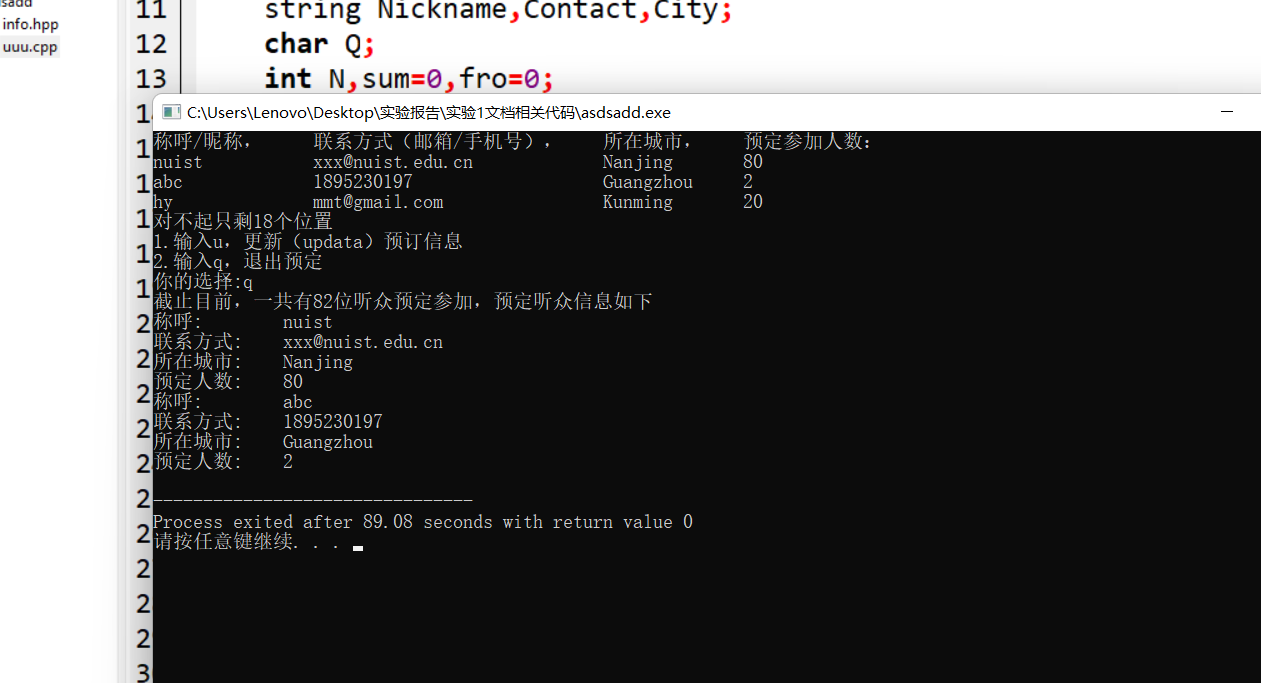 cout<<"截止目前,一共有"<<sum<<"位听众预定参加,预定听众信息如下"<<endl;