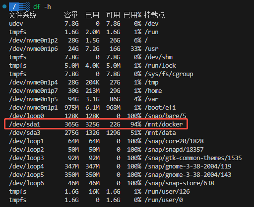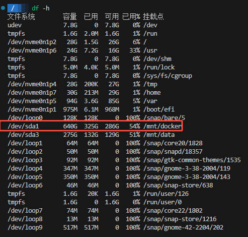 ├─sda1 8:1 0 371.9G 0 part /mnt/docker