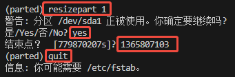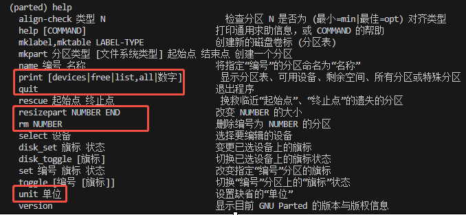 输入 rm 【序号】 删除第n个分区(确认数据已备份!!!!!!)