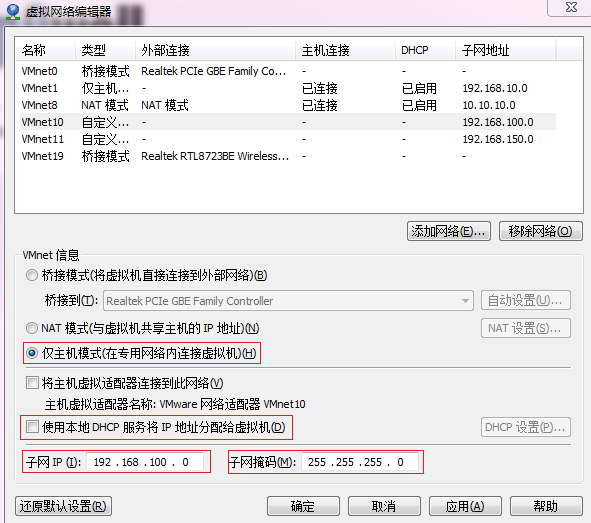 第一块 VMnet10 配置成LAN:DHCP服务器 + web管理