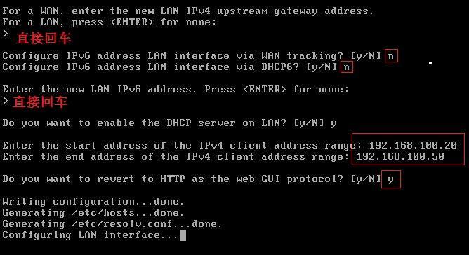 5、配置LAN(选项2):DHCP服务器 + web管理