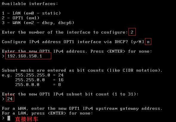 注意:遇到几次 OPT1 显示的ip不是设置的ip,而是DHCP的第一个地址。原因没找到…重新再对OPT1进行设置即可…