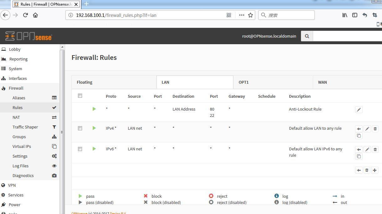 LAN主机访问 192.168.100.1 登陆,进行防火墙规则配置。