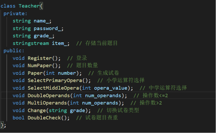 (2)各项数据成员与功能函数命名都语义清晰,可读性好,辅以注释理解更方便;