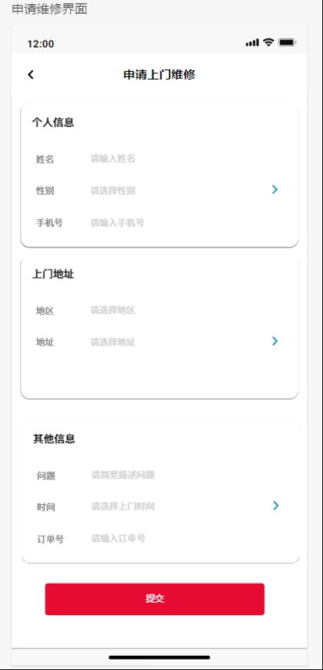 申请维修界面: