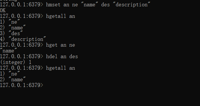 HGETALL key 获取在哈希表中指定 key 的所有字段和值