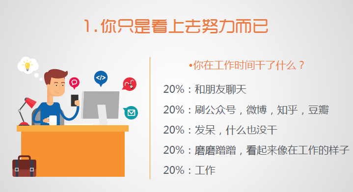 很多时候,你的工作就是上面这样,以为很努力,其实只是低效率,然后发个朋友圈,在别人还未感动之前,自己先感动了自己。