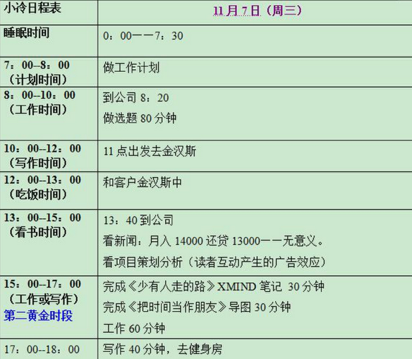 我一直以为自己是高效的,直到2011年,因缘巧合的看了《奇特的一生》,抱着试一试的态度,去尝试做了时间日程表。