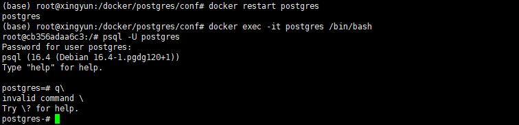 docker exec -it postgres /bin/bash psql -U postgres