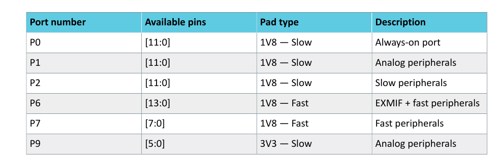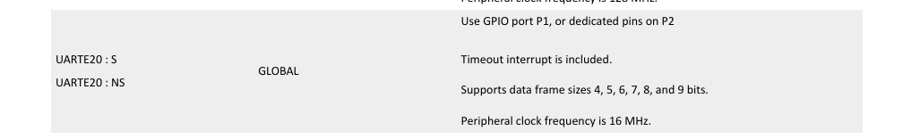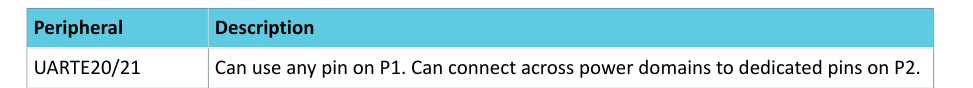 将下面的代码添加到 \nrf\samples\bluetooth\direct_test_mode\boards\nrf54l15dk_nrf54l15_cpuapp.overlay 中编译。这里需要注意的是在NRF54L15上,DTM默认用到的串口是UART20,而在NRF54L系列上有域的概念,也就是说NRF54L系列上的串口是无法像NRF52系列上那样去自由映射的,只能在域对应的Port去修改,这里给出UART20这个域对应的Port口,可以看到UART20只能映射在P1.xx和P2.xx这两组Port口上,但是映射到P2.xx这组Port口上需要跨电源域,所以这里建议UART20只使用P1.xx这组Port: