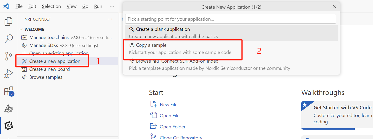 这里可以参考中国区原厂FAE的博客:开发你的第一个nRF Connect SDK(NCS)/Zephyr应用程序 - iini - 博客园 (cnblogs.com)