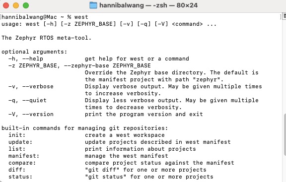 之后就是在电脑上搭建NRF CONNECT SDK的环境了,其实总结下来拉取和编译NCS主要依赖的是west,因为NCS是放在Github上托管的,在拉取NCS的时候,实际上west又在底层调用的是git。所以按照这个思路,在MAC OS上先装好git和Python,然后用Python的pip来安装west就可以拉取代码了。