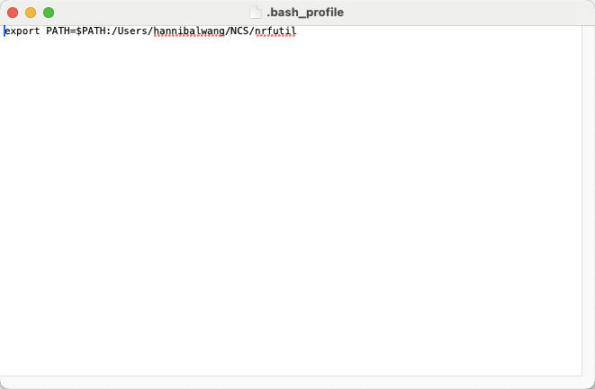 export PATH=$PATH:/Users/hannibalwang/NCS/nrfutil