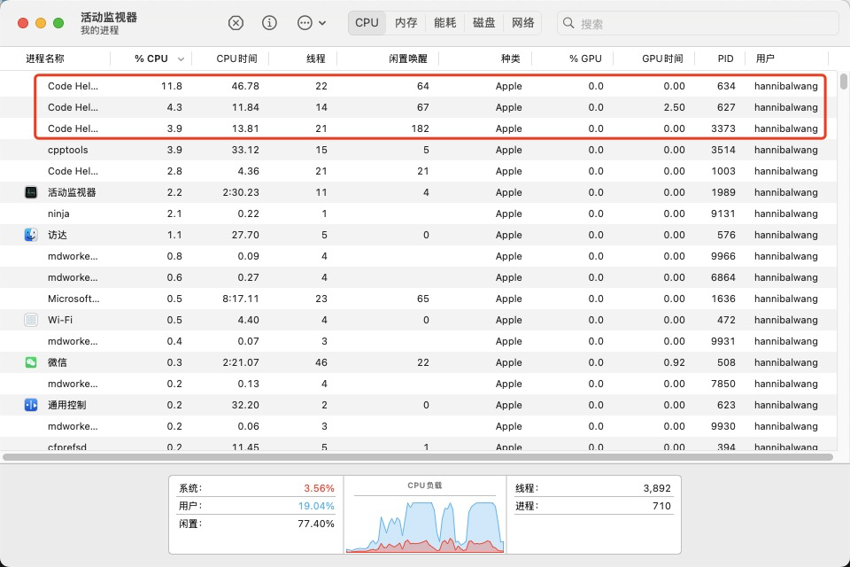 这里我们打开【活动监视器】看一下编译时候的资源使用情况,感觉NCS在MAC OS上编译的时候占用的资源非常少,这点最直观的体验是nrf desktop这个工程在原先我的老Windows笔记本上编译大概需要两三分钟的时间,而且编译的时候风扇狂转,但是在iMac mini4上几十秒就完成了,体验非常不错。