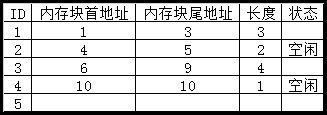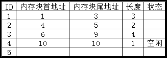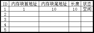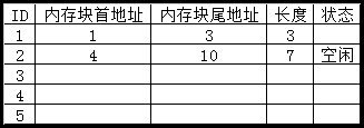 当使用最原始的标记分配方法分配内存时,系统需要维护一个简单的内存信息表:
