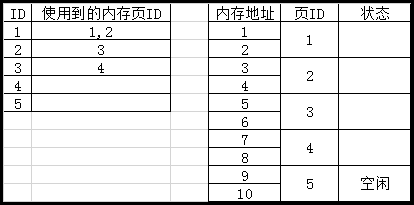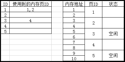 现在,就出现了之前的情况:目前一共有4个内存空间,但是不连续。不过,因为现在是分页管理机制,因此,现在仍然可以继续申请长度为4的内存空间: